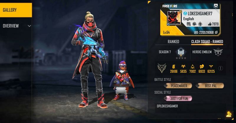 Lokesh Gamer’s Free Fire ID is 220528068, and his IGN is LOKESHGAMER7. His stats as of August 4th, 2021, are provided below